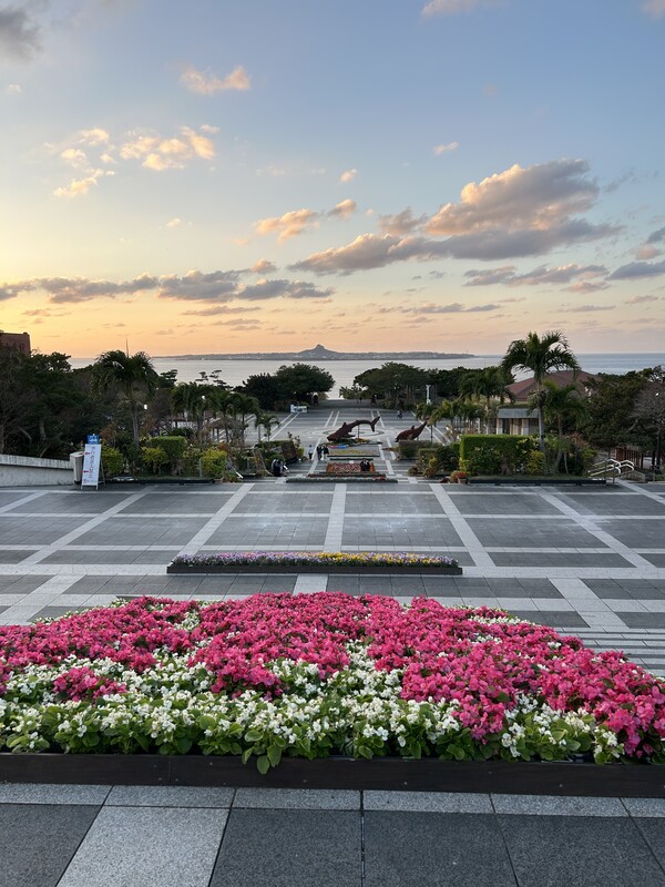 海洋博公園からみる夕日と伊江島タッチュウがとても綺麗で、気持ちも新たにすることができました。